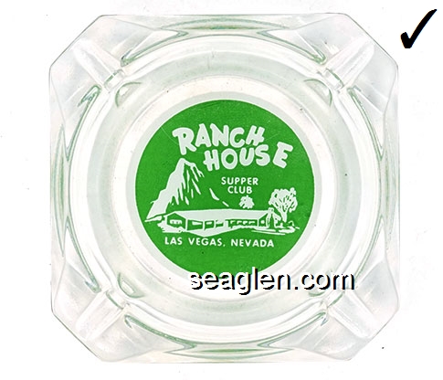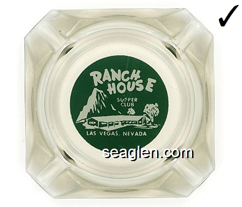RHS-C1 Ranch House Supper Club Las Vegas, NV 4 1/2" Green Glass Ashtray Black and red on white imprint: Bob Taylor's Ranch House Supper Club, Las Vegas, Nevada |