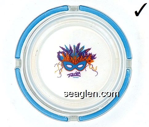 RIV-B2 Riviera Hotel Las Vegas, NV 4" Lt Blue Glass Ashtray Red on white imprint: The Magnificent Riviera Hotel, Las Vegas Nevada (Straight sniffers) |