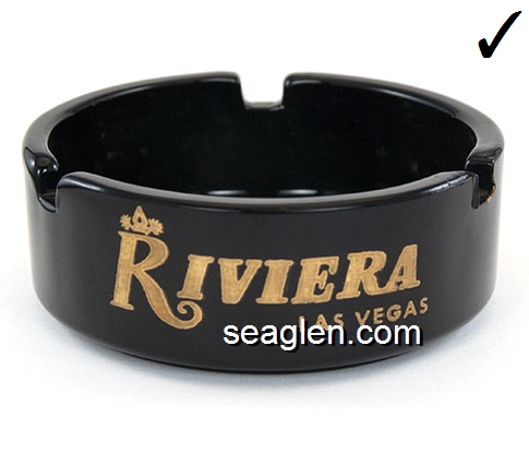 RIV-B5 Riviera Hotel Las Vegas, NV 4" Smoke Glass Ashtray Black on white imprint: The Magnificent Riviera Hotel, Las Vegas, Nevada (Straight sniffers) |