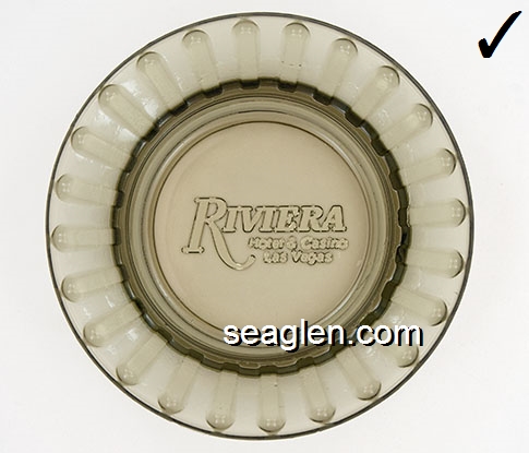 RIV-14 Riviera Hotel Las Vegas, NV 4 1/2" Smoke Glass Ashtray Molded imprint: Riviera, Hotel & Casino, Las Vegas |