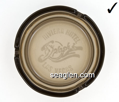 RIV-C7 Riviera Hotel Las Vegas, NV 3 1/2" Smoke Glass Ashtray Etched imprint: Riviera Hotel, Splash, Las Vegas |