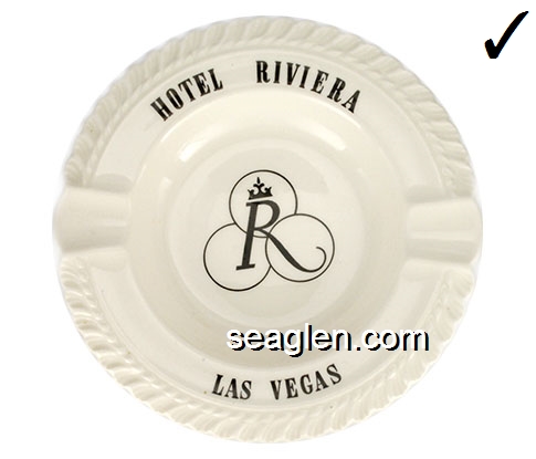 RIV-G1 Riviera Hotel Las Vegas, NV 5 3/16" White Porcelain Ashtray Black imprint: Hotel Riviera, Las Vegas |