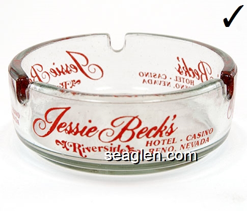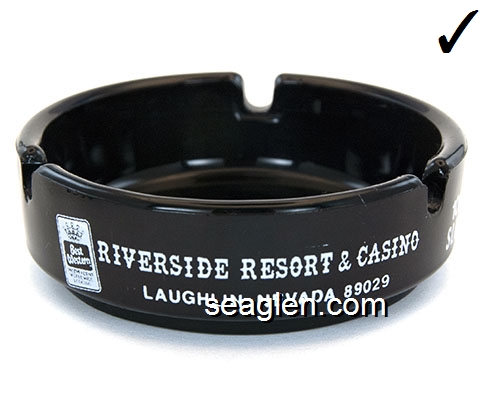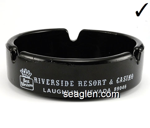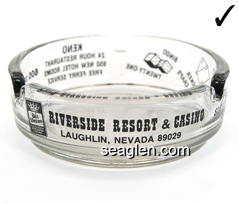 RVR-B3 Riverside Resort & Casino Laughlin, NV 3 5/8" Clear Glass Ashtray Black imprint: Don Laughlin's Riverside Resort Hotel Casino, Laughlin Nevada, ... Video Poker Machines, Luxury Tour Boat - Convention Facilities (With Best Western Logo) |