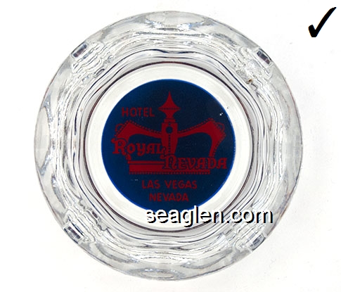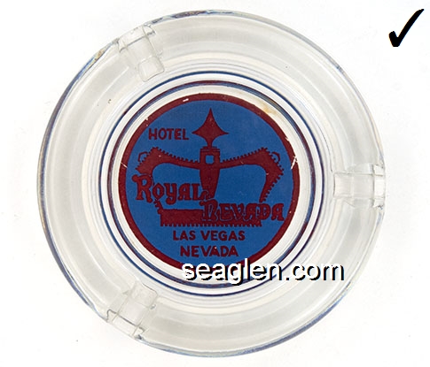 RNV-D4 Royal Nevada Las Vegas, NV 4" Clear Glass Ashtray Red on blue imprint: Hotel Royal Nevada, Las Vegas, Nevada |