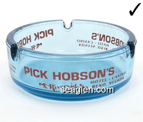 RHC-A7 Ranch House Casino Wells, NV 3 9/16" Blue Glass Ashtray Red on white imprint: Ranch House, Wells, Nevada, Highway U.S. 40 |
