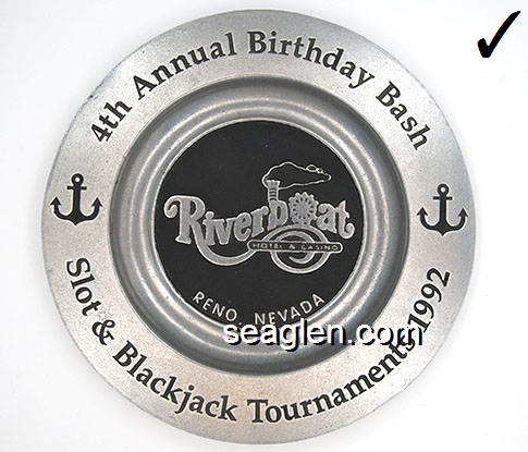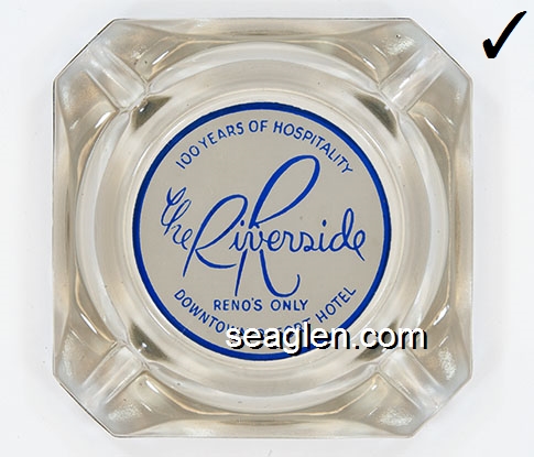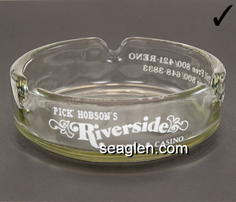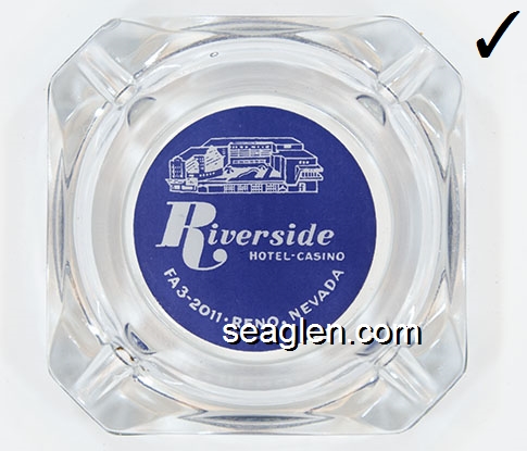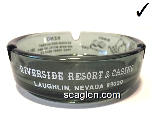 RVR-B2 Riverside Resort & Casino Laughlin, NV 3 11/16" Clear Glass Ashtray Black imprint: Don Laughlin's Riverside Resort Hotel Casino, Laughlin Nevada, ... Pools - 900-Space Full Hook-Up RV Park - Top Name Entertainment |