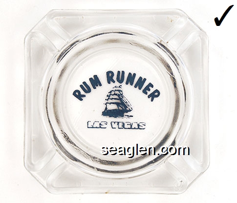 RRL-A1 Rum Runner Lounge Las Vegas, NV 3 1/2" Clear Glass Ashtray Blue imprint: Rum Runner, Las Vegas |