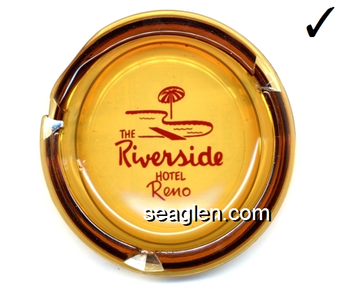 RRH-04 Reno Ramada Hotel and Casino Reno, NV 4 1/2" Amber Glass Ashtray Molded imprint: Reno Ramada, Hotel and Casino |