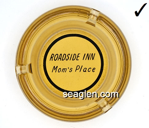 RSI-A1 Roadside Inn, Mom's Place Fallon, NV 4" Amber Glass Ashtray Black imprint: Roadside Inn, Mom's Place |