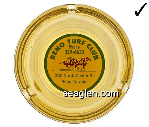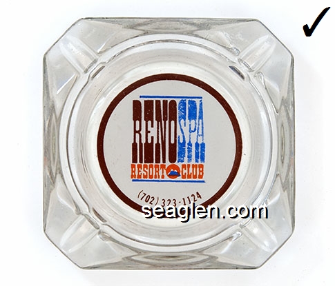 RCI-02 Reno Club Reno, NV 3 7/16" Clear Glass Ashtray White on green imprint: Reno Club Inc. Bingo |