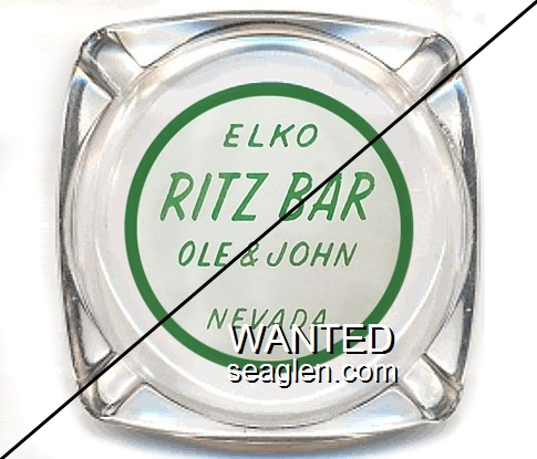 RHC-B1 Ranch House Casino Wells, NV 3 7/16" Clear Glass Ashtray Green on white imprint: Ranch House Bar, Wells Nevada |