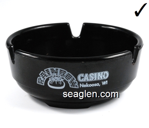 RWI-B4 Rainbow (Wisconsin) Nekoosa, WI 3 3/16" Black Plastic Ashtray White imprint: Rainbow Casino, Nekoosa, WI |