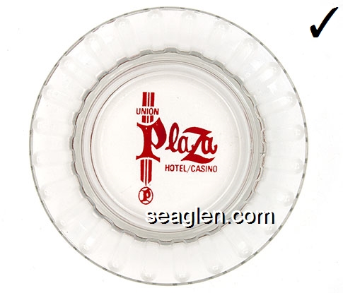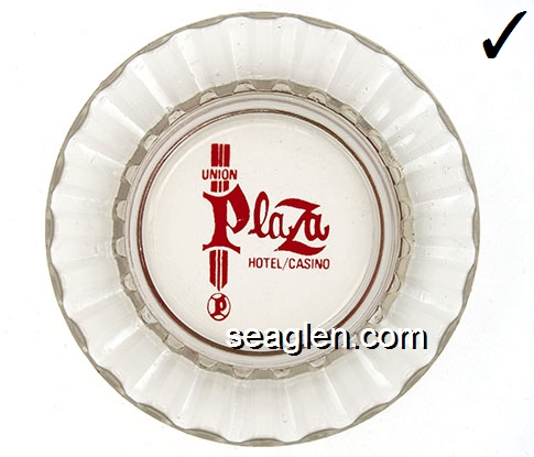 PLA-B1 Union Plaza Hotel & Casino Las Vegas, NV 4 1/2" Clear Glass Ashtray Red imprint: Union Plaza, Hotel/Casino (Like PLA-03, except Style D) |