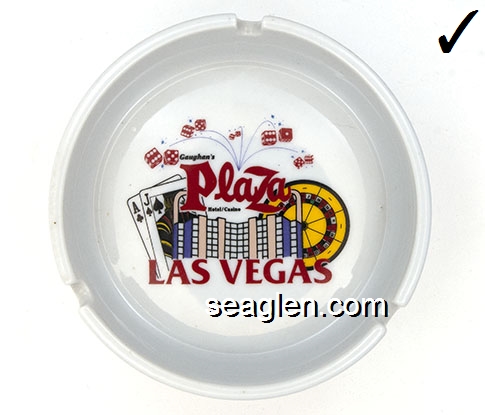 PLA-D1 Union Plaza Hotel & Casino Las Vegas, NV 4 3/4" White Porcelain Ashtray Multi imprint: Gaughan's Plaza, Hotel/Casino, Las Vegas |