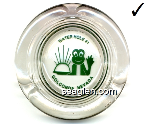WAT-A1 Waterhole #1 Golconda, NV 4 1/2" Clear Glass Ashtray Green imprint: Water Hole #1, Golconda, Nevada (USA moulded under side) |