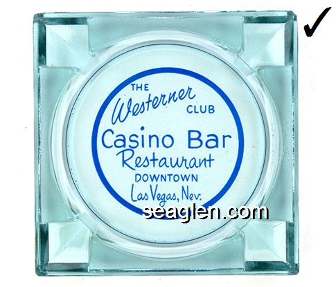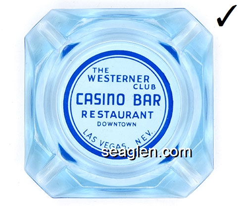 WES-04 Westerner Club Las Vegas, NV 3 1/2" Blue Glass Ashtray Blue imprint: The Westerner Club Casino Bar Restaurant, Downtown Las Vegas, Nev. |