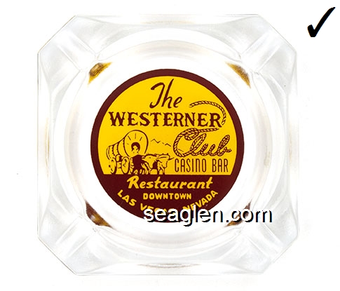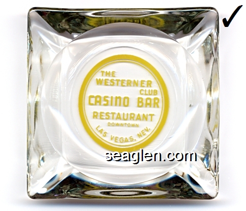 WES-A3 Westerner Club Las Vegas, NV 3 1/2" Clear Glass Ashtray Yellow imprint: The Westerner Club Casino - Bar, Gam's Restaurant, Downtown Las Vegas, Nev. |