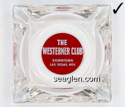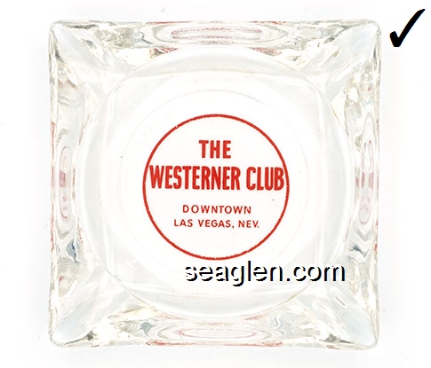 WES-D2 Westerner Club Las Vegas, NV 3 1/2" Clear Glass Ashtray White on red imprint: The Westerner Club, Downtown Las Vegas, Nev. |