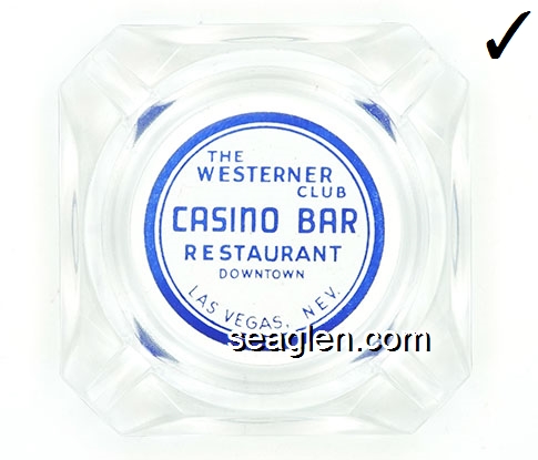 WES-A2 Westerner Club Las Vegas, NV 3 1/2" Clear Glass Ashtray Blue imprint: The Westerner Club Casino Bar Restaurant, Downtown Las Vegas, Nev. |