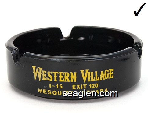![I-80 At McCarran [Exit 19], Western Village Inn & Casino, 1-800-648-1170, Sparks, Nevada - Orange on brown imprint Glass Ashtray](../at_pix/wev_02.jpg) WEV-02 Western Village Inn & Casino Sparks, NV 4 1/2" Amber Glass Ashtray Orange on brown imprint: I-80 At McCarran [Exit 19], Western Village Inn & Casino, 1-800-648-1170, Sparks, Nevada |