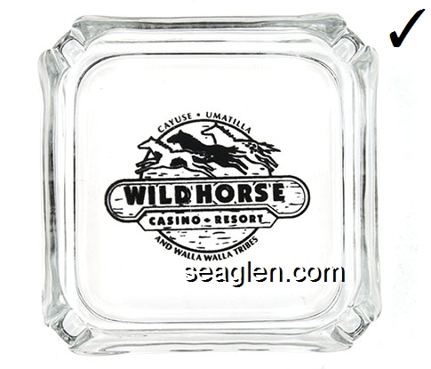 WHC-A1 Wildhorse Resort & Casino Pendleton, OR 3 3/4" Clear Glass Ashtray Black imprint: Cayuse - Umatilla, Wildhorse, and Walla Walla Tribes |