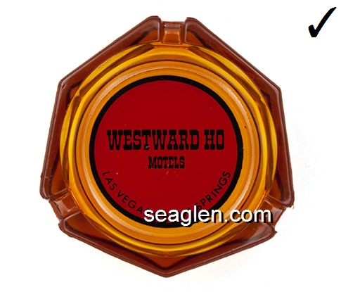 WHO-02 Westward Ho Casino Las Vegas, NV 3 1/4" Amber Glass Ashtray Black on red imprint: Westward Ho Motels, Las Vegas - Palm Springs |