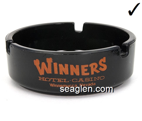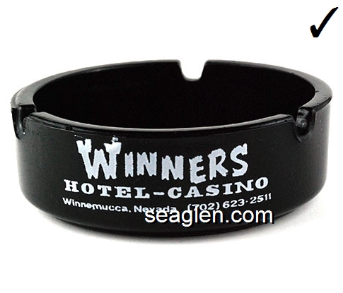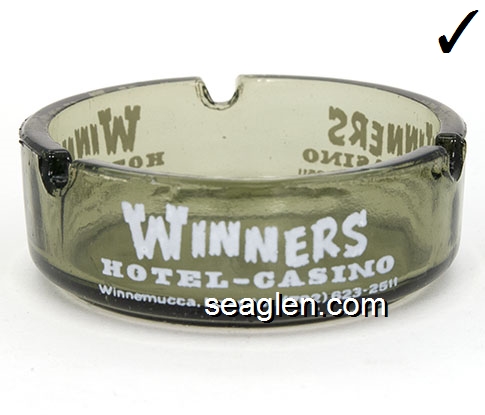 WIN-A2 Winners Inn/ Winners Hotel-Casino Winnemucca, NV 3 9/16" Smoke Glass Ashtray White imprint: Winners Hotel - Casino, Winnemucca, Nevada (702) 623-2511 |