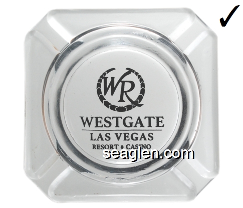 WLV-A1 Westgate Las Vegas Las Vegas, NV 3 11/16" Clear Glass Ashtray Black imprint: WR, Westgate, Las Vegas, Resort - Casino |