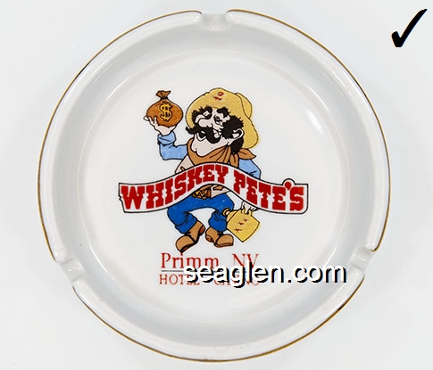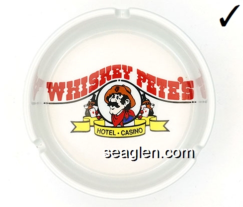 WPC-C1 Whiskey Pete's Casino Primm, NV 4 9/16" White Ceramic Ashtray Red imprint: Whiskey Pete's, Primm, NV, Hotel - Casino |