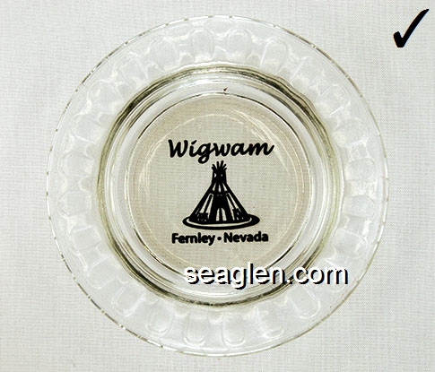 WWM-A1 Wigwam Casino Fernley, NV 4 1/2" Clear Glass Ashtray Black imprint: Wigwam Fernley - Nevada |