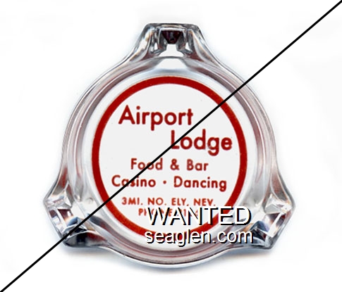 AIR-A1 Airport Lodge 3 1/2" Clear Glass Ashtray "Airport Lodge, Food & Bar, Casino - Dancing, 3 Mi. No. Ely, Nev., Phone 2144" - Red |
