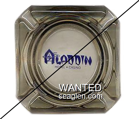 ALA-R1 Aladdin Hotel-Casino 3 1/2" Smoke Glass Ashtray "Aladdin Hotel - Casino" - Blue on white |
