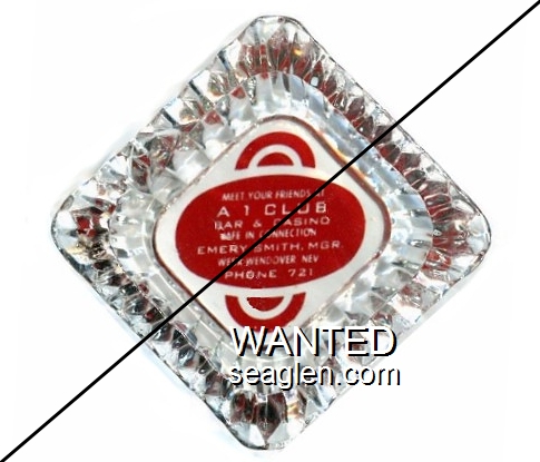 AOC-A2 A-1 Service Casino & Cafe 4 1/2" Clear Glass Ashtray "Meet Your Friends at A 1 Club, Bar & Casino, Cafe in Connection, Emery Smith Mgr, West Wendover, Nev, Phone 721" - White on red |