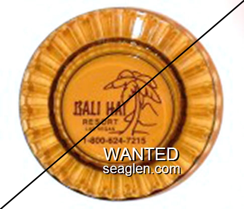 BAH-B1 Bali Hai Motel 4 1/2" Amber Glass Ashtray "Bali Hai Resort, Las Vegas, 1-800-524-7215" - Brown |