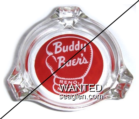BBR-A1 Buddy Baer's 3 1/4" Clear Glass Ashtray "Buddy Baer's, Reno, Nevada" - White on red |