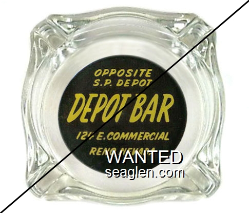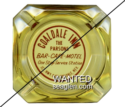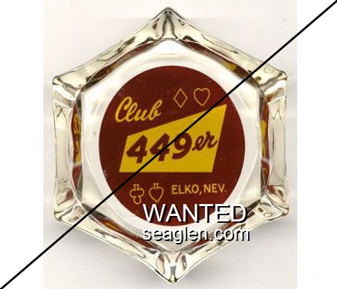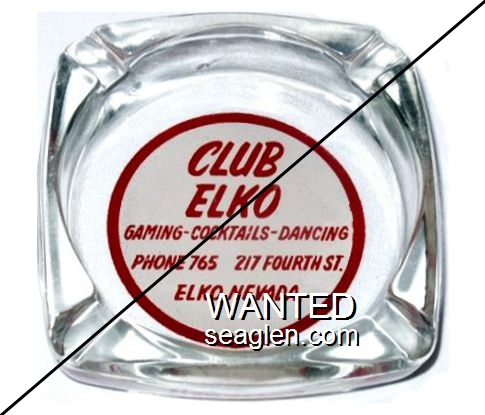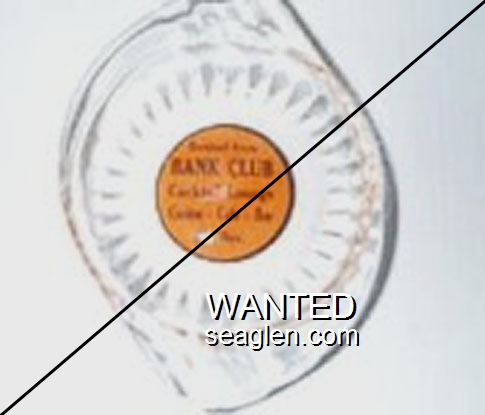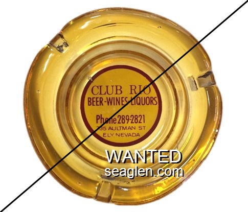 BCE-A1 Bank Club (Ely) 3 3/8 x 4 3/4" Clear Glass Ashtray "Borrowed From Bank Club Cocktail Lounge, Casino - Cafe - Bar, Ely, Nev." - Brown on yellow |