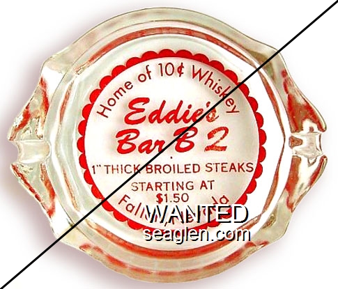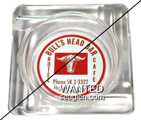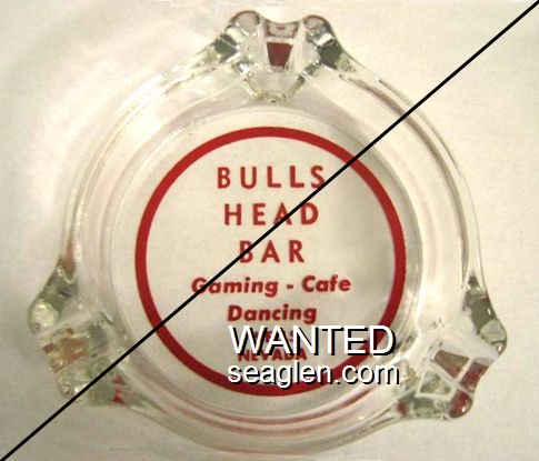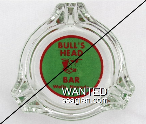 BHB-B2 Bull's Head Bar 3 1/2" Clear Glass Ashtray "Bull's Head Bar, Wells, Nevada" - Red on green |