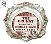 BHR-C1 Big Hat 3 3/4" Clear Glass Ashtray "The Big Hat, Reno, Nev., Cocktails & Dinners, Phone FA 3-8868" - Red |