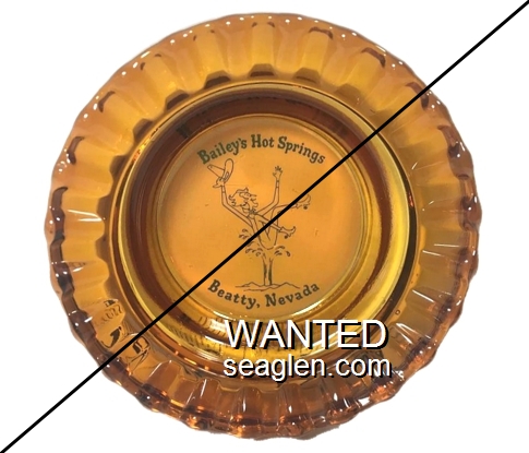 BHS-A1 Bailey's Hot Springs 4 1/2" Amber Glass Ashtray "Bailey's Hot Springs, Beatty, Nevada" - Black on white |