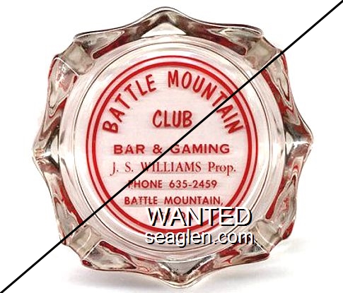 BMC-A1 Battle Mountain Club 3 3/4" Clear Glass Ashtray "Battle Mountain Club, Bar & Gaming, J.S. Williams, Prop., Phone 635-2459, Battle Mountain, Nevada" - Red |
