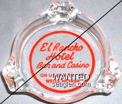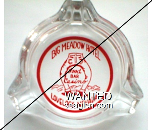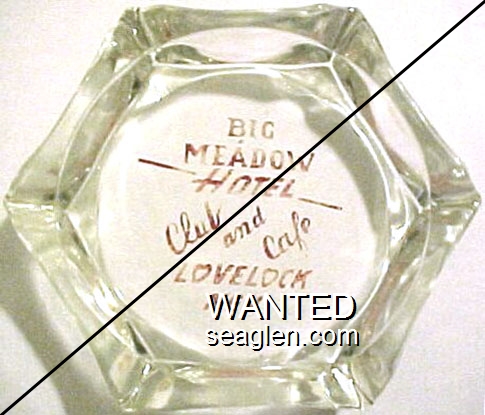 BML-91 Big Meadow Club 3 1/2" Clear Glass Ashtray "Big Meadow Hotel, Food, Bar, Casino, Lovelock, Nevada" - Red (A silk screened fake, sold on eBay by seller greencOkecollector) |