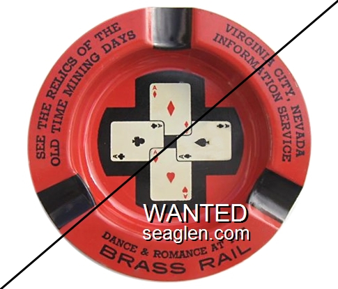 BSR-A1 Brass Rail 4 5/8" Red Metal Ashtray "Dance & Romance at the Brass Rail, See the Relics of the Old Time Mining Days, Virginia City, Nevada, Information Service" - Black |