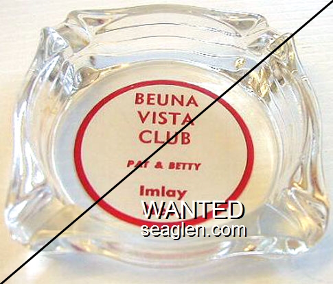 BVC-A1 Buena Vista Club 3 7/16" Clear Glass Ashtray "Buena Vista Club, Pat & Betty, Imlay, Nev." - Red on white |