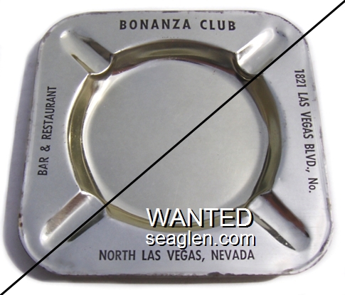 BZL-B1 Bonanza Club 4 1/8" Silver Metal Ashtray "Bonanza Club, Bar & Restaurant, 1821 Las Vegas Blvd., No., North Las Vegas, Nevada" - Black |