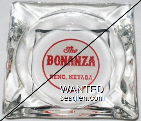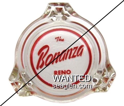 BZR-A1 Bonanza Club (Reno) 3 1/2" Clear Glass Ashtray "The Bonanza, Reno, Nevada" - Red on white |