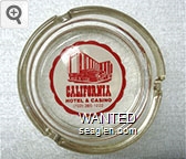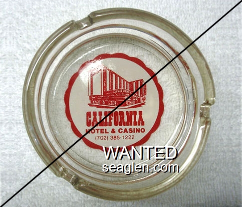 CAH-C1 California Hotel and Casino 3 1/2" Clear Glass Ashtray "California Hotel & Casino, (702) 385-1222" - Red on white |