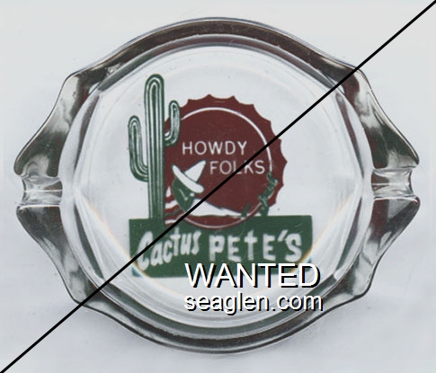 CAP-C4 Cactus Pete's 5" Clear Glass Ashtray "Howdy Folks, Cactus Pete's" - Red and green on white (Large logo) |