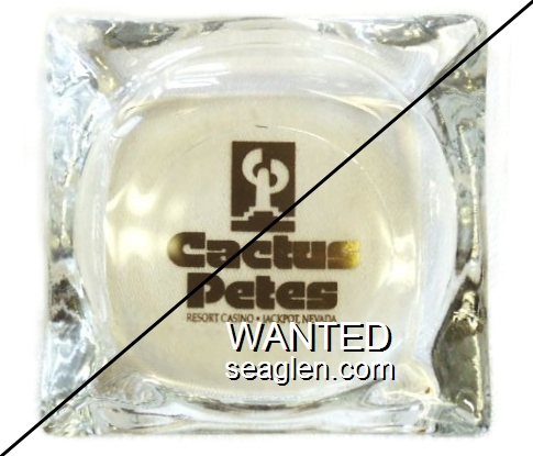 CAP-D1 Cactus Pete's 3 9/16" Clear Glass Ashtray "Cactus Pete's, Resort Casino, Jackpot, Nevada" - Gold |