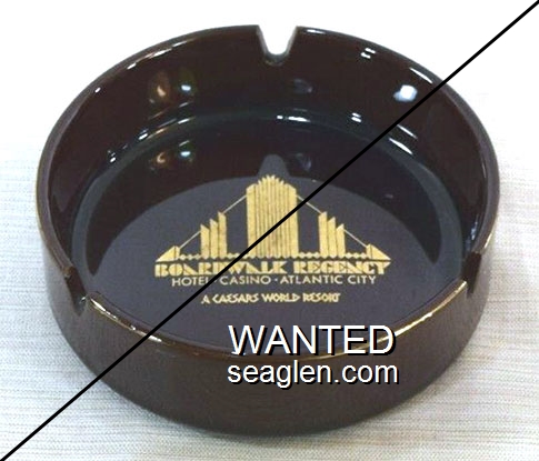 CBR-E1 Caesars Boardwalk Regency ?" Black Porcelain Ashtray "Boardwalk Regency, Hotel - Casino - Atlantic City, A Caesars World Resort" - Gold |
