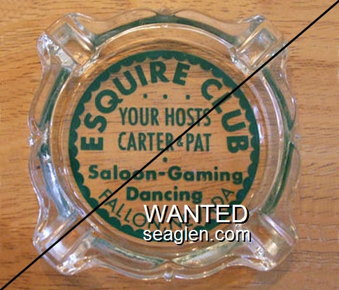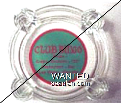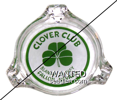 CCF-A1 Clover Club 3 1/4" Clear Glass Ashtray "Clover Club, Blanche Kinney, Fallon, Nevada" - Green on white |